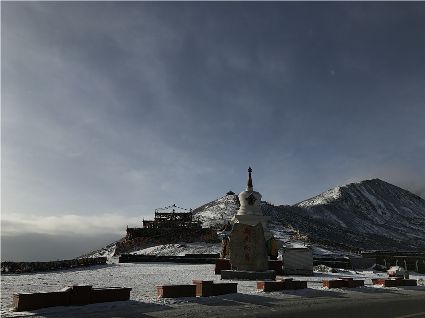 記得,離開甘孜縣城,前往滿金寺的那個(gè)早晨。同行的幾個(gè)人早早用過了早飯,趁著出發(fā)前僅有的一點(diǎn)時(shí)間,站在頂樓視野開闊的餐廳里,盼著太陽(yáng)沖出來,直接把陽(yáng)光大把大把地扔在大雪所覆蓋的一切事物上。天公作美,出發(fā)之前,太陽(yáng)慷慨了一回。于是,一陣噼噼啪啪的快門聲響了起來,應(yīng)和著寥寥餐廳里的某種空白。