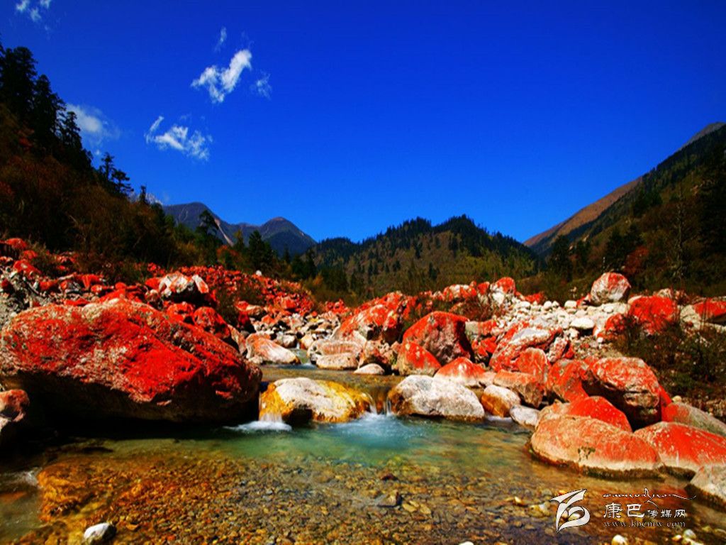 后來我在西藏也有與紅石灘相遇的經(jīng)歷。一次從波密去墨脫,在一個叫24K的地方,河灘上一片大小不一的礫石上滿是紅色。