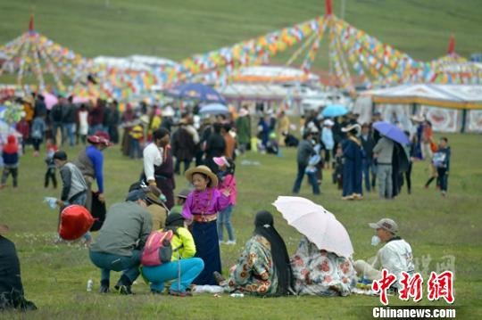 扎溪卡草原上的“帳篷節(jié)”吸引了不少當?shù)孛癖姾陀慰汀?劉忠俊 攝