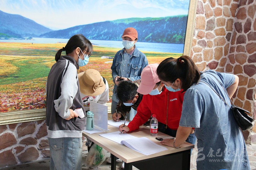 景區(qū)工作人員正在為游客做疫情防控登記。