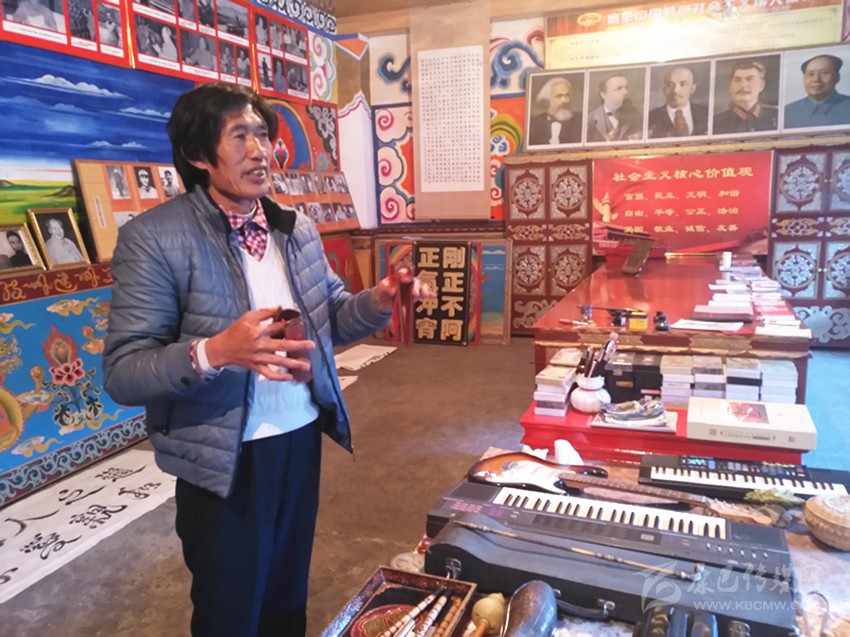 到了九龍,記者幾次打算采訪呷爾鎮(zhèn)原文化站站長(zhǎng)王長(zhǎng)生。王長(zhǎng)生,人稱王老表。65歲的王長(zhǎng)生本該退休在家安享晚年,然而,作為九龍乃至甘孜州的文化名人以及他在開展群眾工作方面的建樹,退休后,他依舊是個(gè)大忙人,黨的十九大勝利召開后,作為省級(jí)優(yōu)秀宣講員,為了搞好宣講,他潛心備課,黨的十九大精神宣講全面鋪開后,他與宣講團(tuán)成員一道奔赴瀘定、丹巴、雅江、九龍等縣農(nóng)牧區(qū)宣講。12月12日,他忙里偷閑,在美觀整潔的家里接受了記者的采訪,多才多藝的王長(zhǎng)生向記者展示了他高超的才藝。