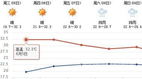 5日白天開(kāi)始一直到9日,以多云天氣為主,其中7日晚有陣雨,日最高氣溫在30度上下,天氣比較舒適,不會(huì)出現(xiàn)高溫天氣,高考和端午節(jié)期間天氣還是比較給力: