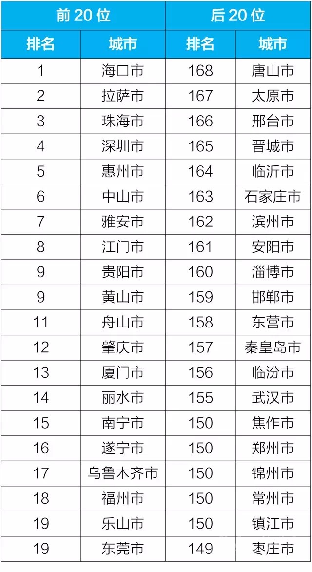通報(bào)顯示,2019年5月,168個(gè)重點(diǎn)城市中唐山、太原、邢臺(tái)市等20個(gè)城市空氣質(zhì)量相對(duì)較差(從第168名到第149名),無(wú)四川城市;2019年1-5月,168個(gè)重點(diǎn)城市中臨汾、石家莊、邢臺(tái)市等21個(gè)城市空氣質(zhì)量相對(duì)較差(從第168名到并列第148名),無(wú)四川城市。