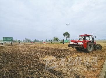 綿陽市安州區(qū)河清鎮(zhèn)小麥綠色高質(zhì)高效示范區(qū)內(nèi),正在展示小麥機械直播施肥一體化技術(shù)。