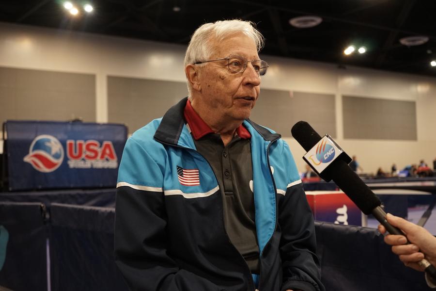 ??2023年12月16日,中美“乒乓外交”親歷者戴爾·斯威里斯在2023年美國(guó)乒乓球公開賽老年組比賽間隙接受新華社記者專訪。
