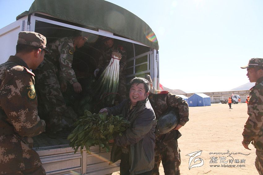 本網(wǎng)訊(張璟文/圖)“王老板怎么你也來災(zāi)區(qū)了?”矮胖的王曉平回過頭手上拿著一大把白菜笑著答道:“災(zāi)區(qū)的群眾更需要新鮮的蔬菜瓜果,現(xiàn)就免費送上價值7000多元的蔬菜瓜果、肉食品。”