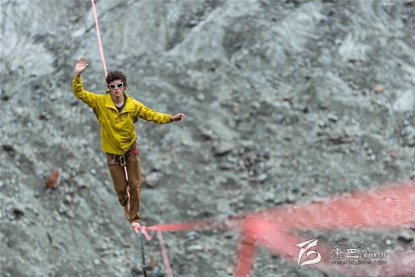 上午11時(shí),參加2016華僑城海螺溝中法高空扁帶極限挑戰(zhàn)賽的兩名法國選手——Nathan PAULIN和Lucas MILLIARD,在海螺溝大橋下的橋墩之間,挑戰(zhàn)全球最快走完100米高空扁帶的世界紀(jì)錄。