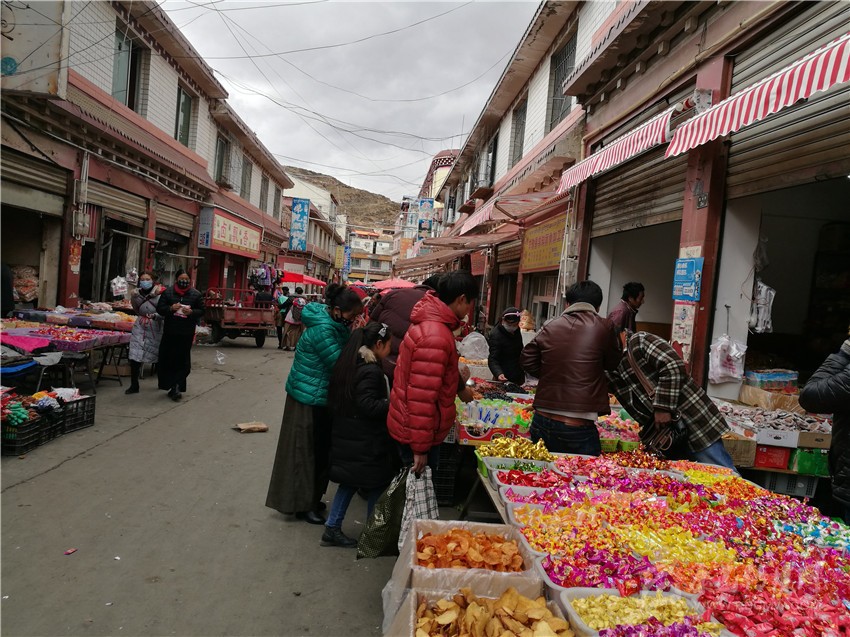 筆者在該縣副食店、超市看到,商家的各種促銷優(yōu)惠活動,吸引了不少農(nóng)牧民群眾,前來購買年貨的群眾熙熙攘攘。各種涼鹵食品店的生意也相當火爆?!翱爝^年了,吃的、用的和穿的都得買點,過完藏歷年,就要忙春耕生產(chǎn)了?!笔掷锪嘀蟀“曦浀慕荡霛M臉喜悅地說。