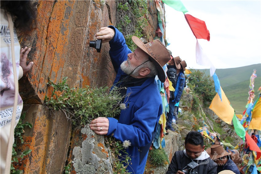 專家學(xué)者考察石渠巖畫(huà)。