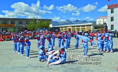 康定縣少先隊(duì)員代表藏區(qū)少先隊(duì)員參加央視“六一”晚會(huì)。