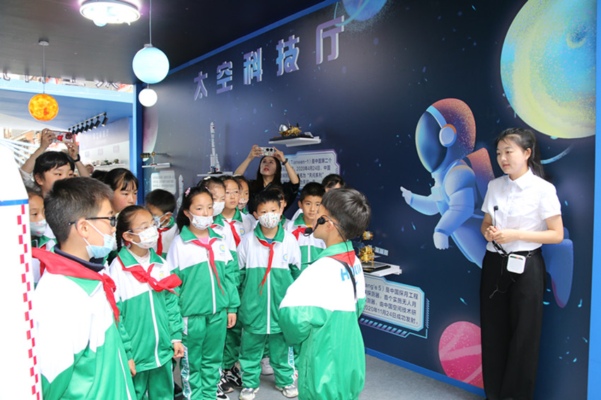 學(xué)生們?cè)谔湛萍紡d參觀。