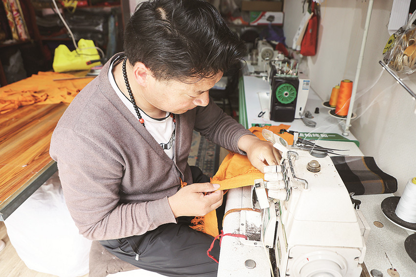 扎西澤仁準(zhǔn)備上機縫合布料